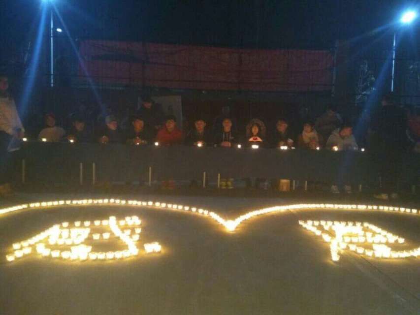 活动现场,巨大的心形蜡烛营造出了一种温馨感人的氛围。