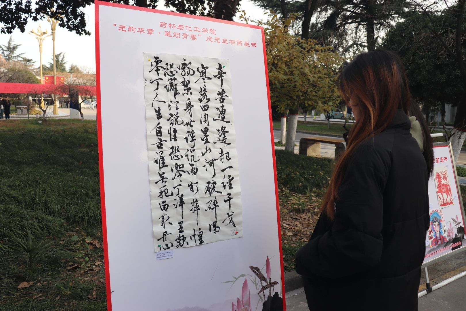 2025年元旦之际,陕西农林职业技术大学药物与化工学院团委以“元韵华章·笔颂青春”为主题,成功举办庆元旦书画作品展。65幅学生创作的书法、绘画、剪纸等作品汇聚一堂,以传统艺术为底色,以青春创意为笔墨,为新年献上一场文化盛宴。