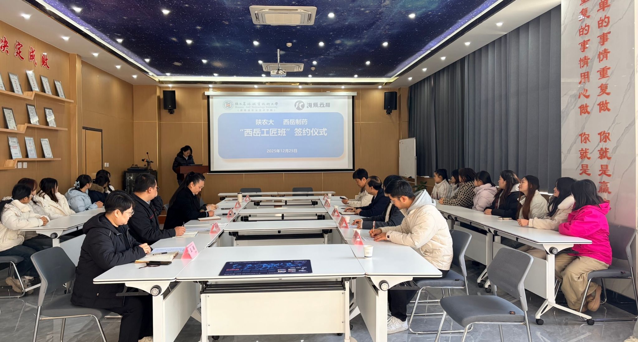 2025年12月25日,药物与化工学院与陕西西岳制药(扶风)有限公司组建“西岳工匠班”首届开班仪式在扶风工业园区举行。学院院长周博、教研室主任冯雷雷及专业教师代表,西岳制药总经理赵燕、华伟医药董事长胡煜等人出席仪式,参加仪式还有25名首届工匠班学生。
